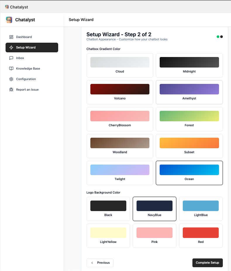 Once you’ve installed the app, you’ll be directed straight to the Setup Wizard—your quick-start gateway to customizing Chatalyst.