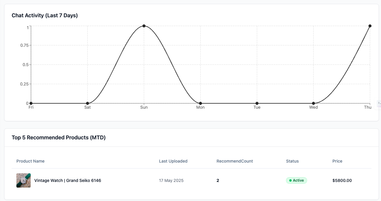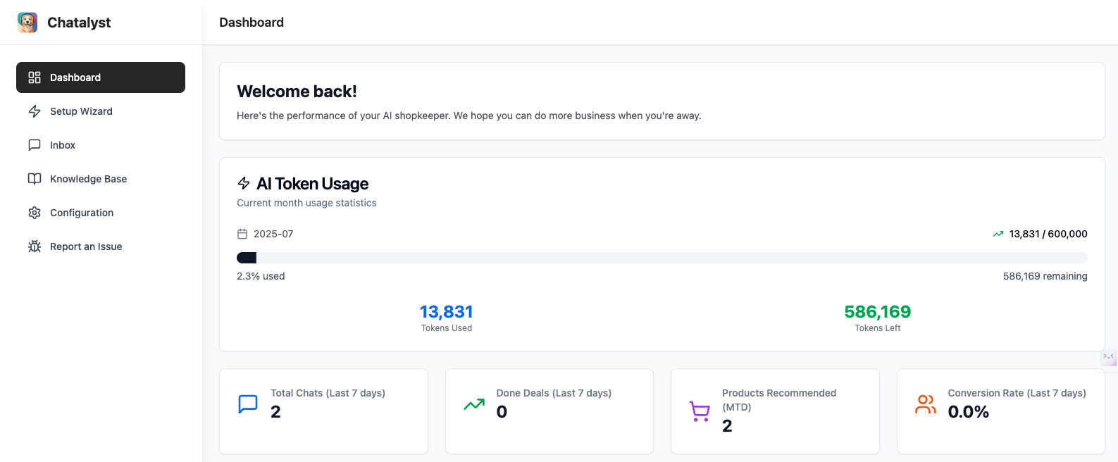 Get a high-level view of how Chatalyst is supercharging your store. Visit the Dashboard page for easy-to-digest analytics and insights.